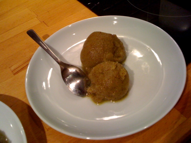 This was a great tasting sorbet. The taste is a bit unusual but very refreshing and interesting. The crushed seeds from the kiwifruits adds an additional texture to the sorbet.